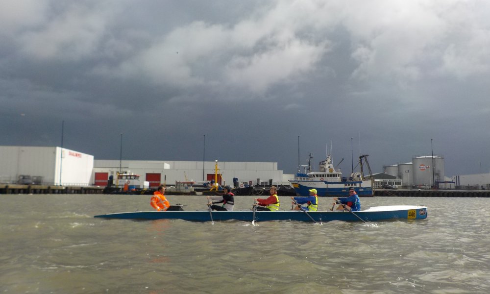 Impressie van het roeien op de waddenzee met zeewaardige roeiboten.